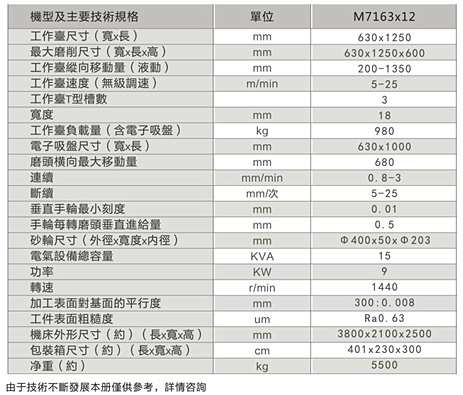 工作精度:加工工件等厚度 0.015mm/1000mm;局部0.008mm/300mm